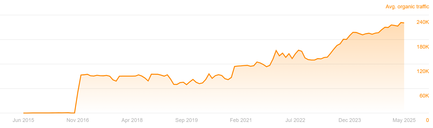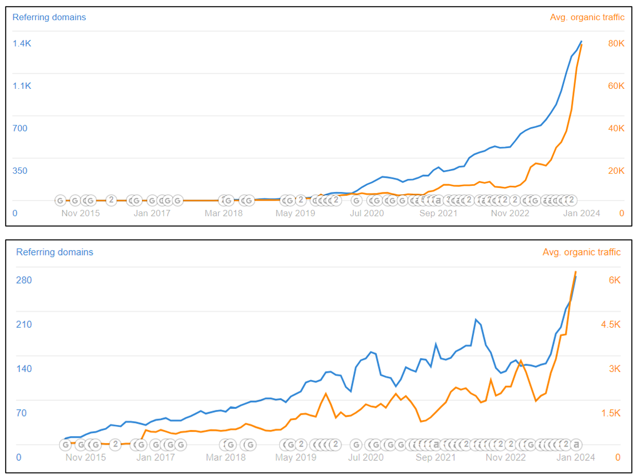 This correlation appears consistently across industries—as backlinks increase, traffic tends to follow the same trajectory.