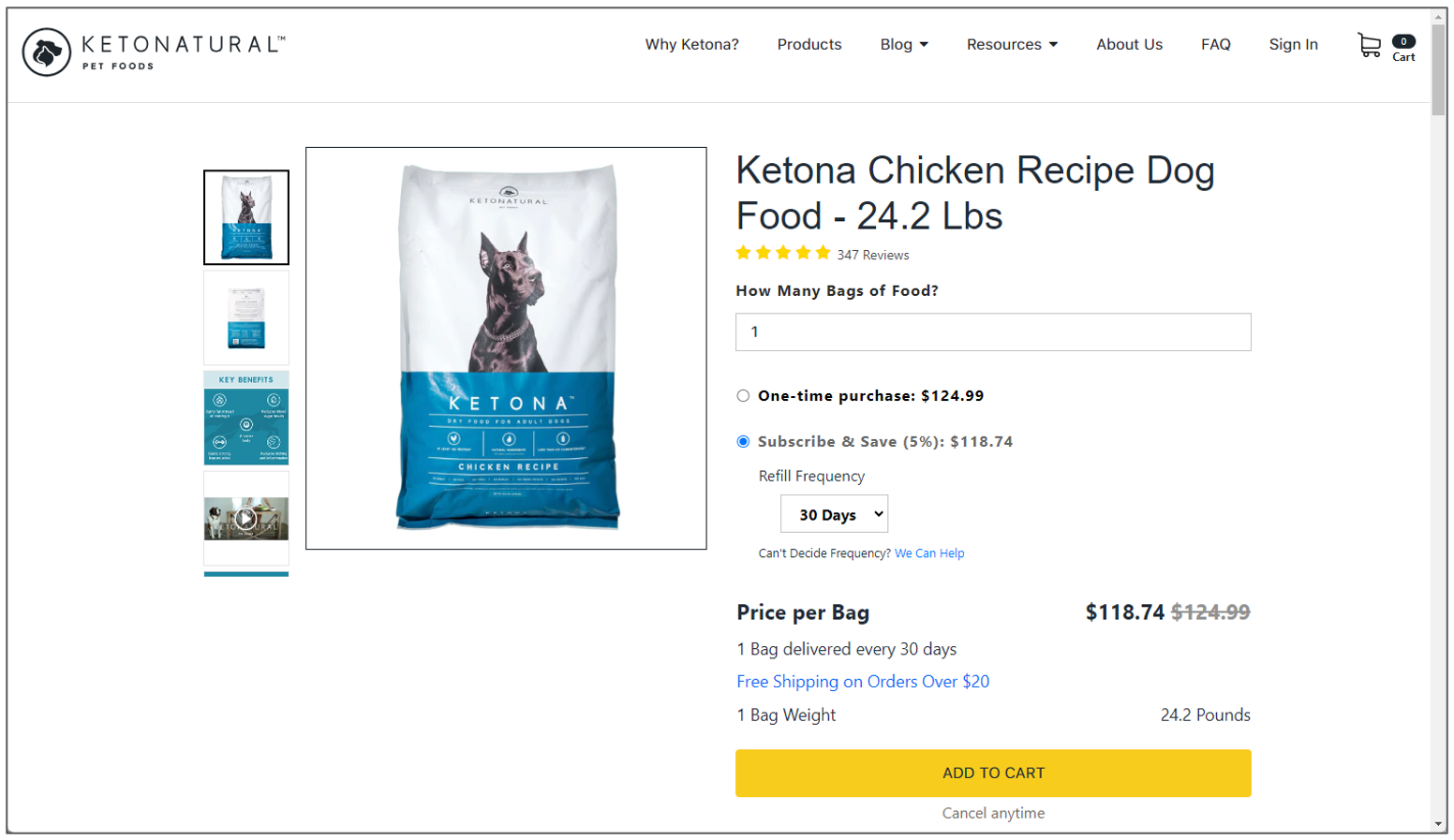 Consider Keto Naturals selling premium dog food at $120 per bag.