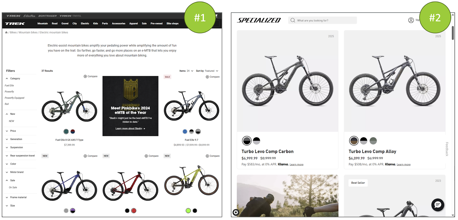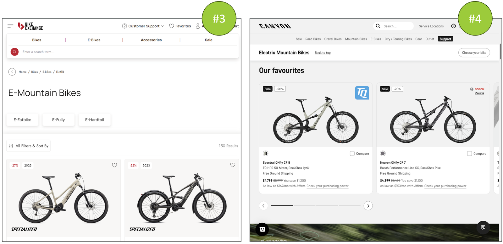 The top-ranking sites for this term (Trek, Specialized, BikeExchange, Canyon) all had category pages ranking on page one—not a single product page in sight.