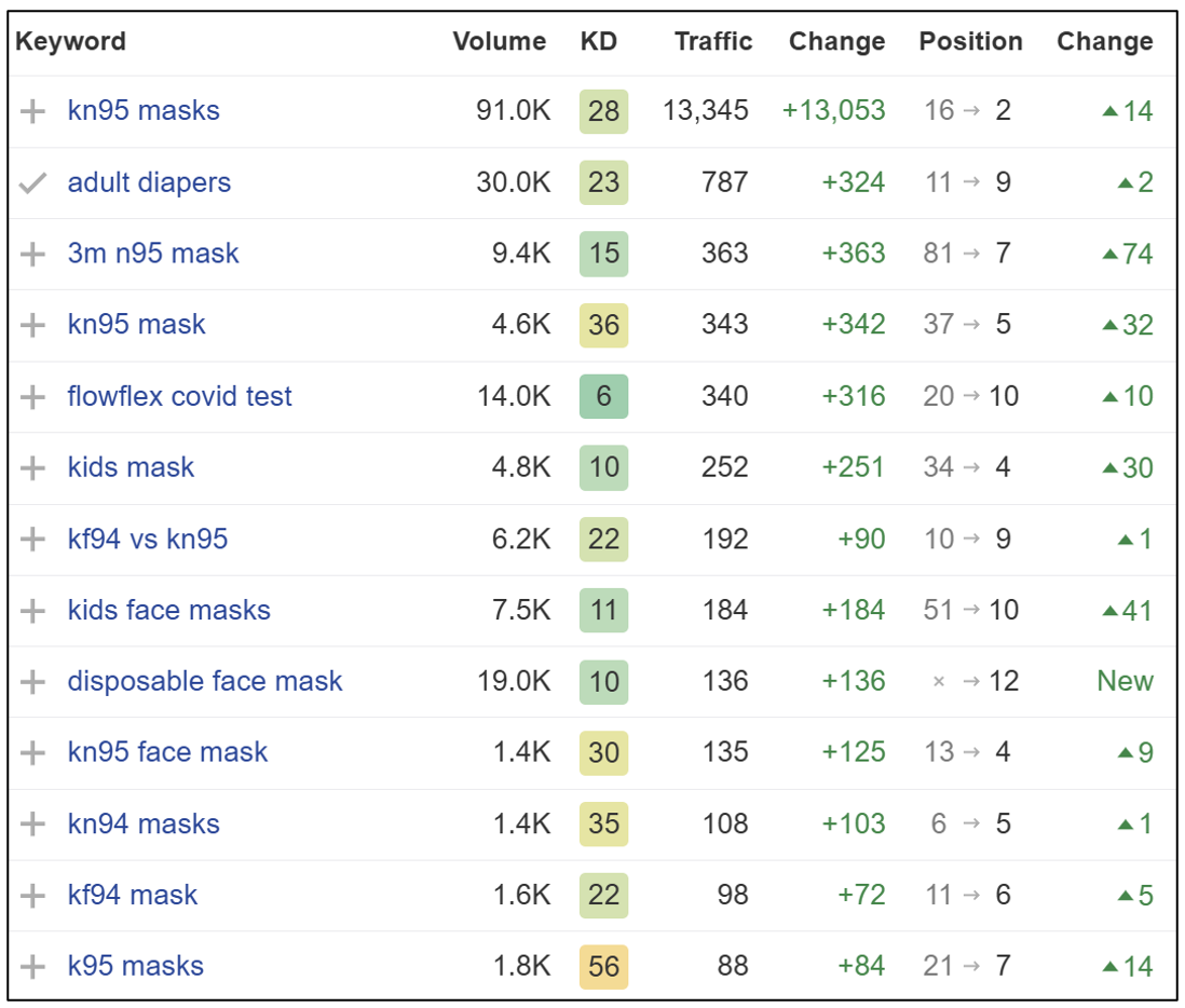 And their keyword rankings for many of their competitive terms shot up to page one.