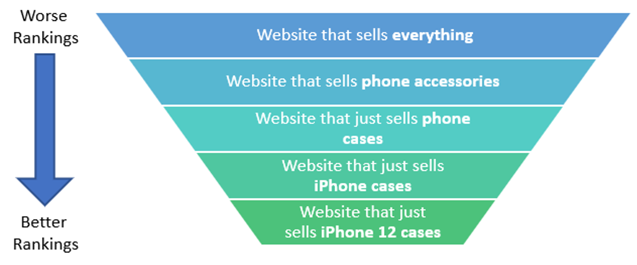 - A site selling phone cases will be outranked by a site that just sells iPhone cases