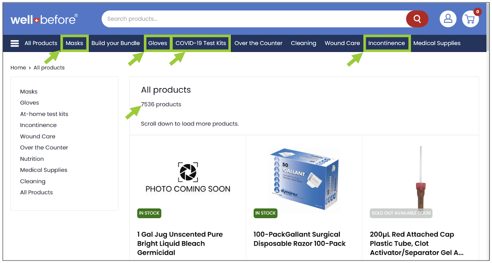 One e-commerce site, WellBefore.com, took this concept to the extreme. Initially they had 7,500+ products across many health and wellness categories (first aid, bandaids, hand sanitizers, pain relief, etc).